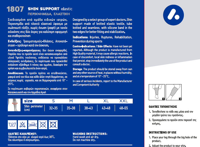 Περικνημίδα από πλεκτό ελαστικό ύφασμα με σωληνωτή πλέξη, χωρίς ένωση (ραφή) με ταινία σιλικόνης στις δύο άκρες για καλύτερη εφαρμογή και σταθεροποίηση.