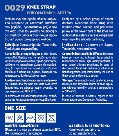 Δέστρα γονάτου από Neoprene με εσωτερική επένδυση από βαμβάκι, με προστατευτικό μαξιλαράκι στο κάτω μέρος του γονάτου που προσφέρει επιπλέον βοήθεια όταν έχουμε προοδευτική φθορά του αρθρικού χόνδρου.
