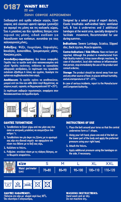 HomeΠροϊόνταΟρθοπαιδικάΚοιλιά & Μέση0187 Ζώνη Οσφύος 22cm