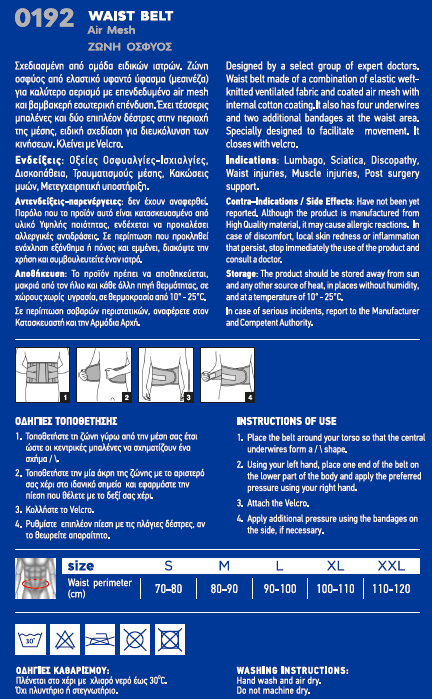 HomeΠροϊόνταΟρθοπαιδικάΚοιλιά & Μέση0192 Ζώνη Οσφύος air mesh