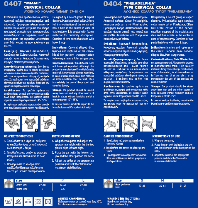 Αυχενικό κολάρο τύπου Philadelphia, κατασκευάζεται από Plastazote. Προσφέρει πλήρη σταθεροποίηση του αυχένα, άριστη στήριξη στο ινιακό και στη γνάθο. Αποτελείται από 2 κομμάτια που κλείνουν με Velcro.