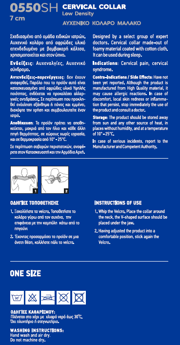 Σχεδιασμένο από ομάδα ειδικών γιατρών. Αυχενικό κολάρο από αφρώδες υλικό επενδεδυμένο με βαμβακερή κάλτσα, χρησιμοποιείται και στον ύπνο.
