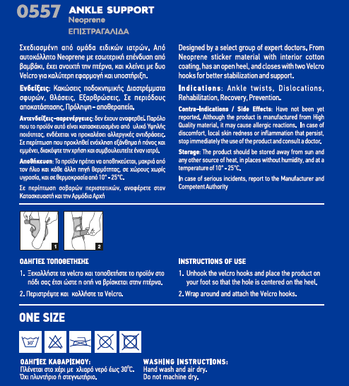 | Ενδείξεις | Αποθεραπεία, Αποκατάσταση, Διάστρεμμα, Εξαρθρώσεις, Θλάσεις, Κάκωση, Ποδοκνημική, Πρόληψη, Σφυρός |