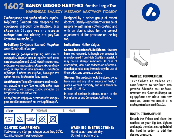 Νάρθηκας βλαισού από Νeoprene με εσωτερική επένδυση και ελαστική δέστρα κάτω από το πέλμα. Χρησιμοποιείται κυρίως για απαγωγή του μεγάλου δαχτύλου του ποδιού.